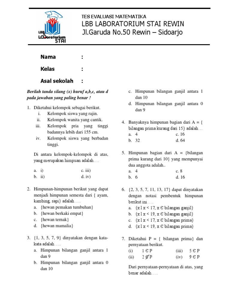 Lengkapilah tabel berikut ini no dinyatakan dengan menyebutkan anggotanya dinyatakan dengan menuliskan sifat keanggotaannya dinyatakan dengan notasi pembentuk himpunan 1.