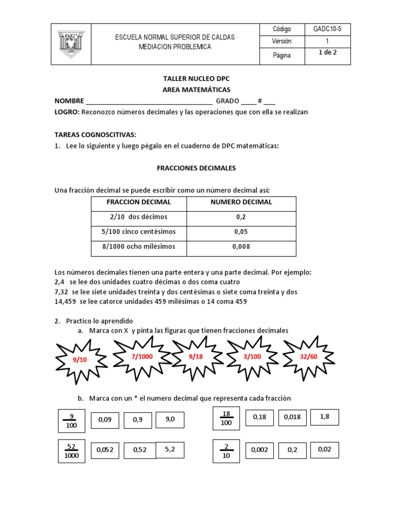 Curso completo de números decimales. Descomposición comparación sumas y restas recta numérica añadir a mis cuadernos 246 descargar archivo pdf insertar en mi web o blog. Una fracción decimal es aquella en la cual el denominador es una potencia de diez como sería 10 100 1000 10000 etc. Por ejemplo el número.
