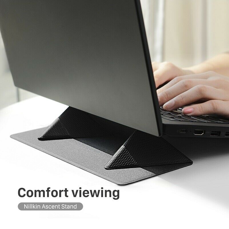 The sturdy non slip stand allows you to ergonomically angle your laptop and phone to prevent aches and tension while ventilation holes improve your laptop s cooling performance.