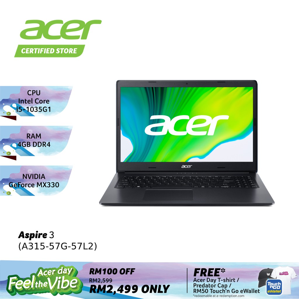 Acer aspire 3 a315 57g 52ra laptop with 10th gen intel core processor and nvidia mx330 graphic part no.