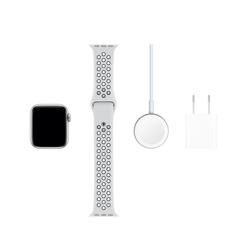 Apple watch series 5 44mm silver aluminum case white sport band mwvd2lla 4 8 out of 5 stars based on 47 product ratings 47 359 94 new. Grade a refurbished may show light signs of wear including micro scratches on the screen. 44mm or 40mm case size. From a features perspective apple watch series 4 apple watch series 5 and apple watch series 6 in aluminum or stainless steel are identical.