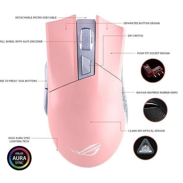 Pink others other asus official store free shipping and financing available asus rog gladius ii origin pnk limited edition gaming mouse precise movement aim delivered by a battle tested pixart pmw3360 optical sensor 12000 dpi optical 50g acceleration and 250 ips. The rog gladius ii origin pnk ltd has an advanced 12000 dpi optical sensor for fast response and precise control ergonomic right handed design to ensure you stay comfortable during extended gaming sessions and aura sync lighting technology to outshine the competition. Chuột gaming asus rog gladius 2 origin pink ltd. Color pink style rog gladius ii origin pink wired designed for esports with a 12000 dpi optical 50g acceleration and 250 ips sensors the aura sync enabled rog gladius ii origin is built for comfort across all grip types.