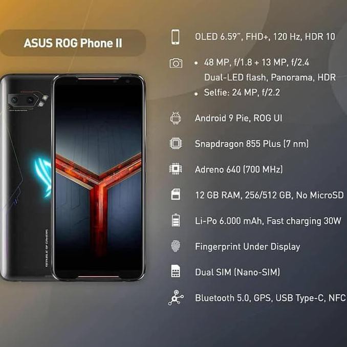Asus rog phone ii. It gives you the power to win with the world s fastest 1 qualcomm snapdragon 855 plus 12gb ram a monster 6000mah battery and the unrivaled gamecool ii vapor chamber cooling system for non stop full speed performance. Rog phone ii is the next step in the evolution of mobile gaming. The asus rog phone ii is the ultimate gaming phone. It also features 120hz 1ms amoled hdr 6 59 inch display offering world beating delta e 1 color accuracy and ultralow 49ms touch response for visual experience.