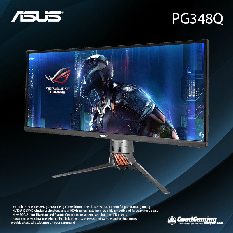 Asus rog swift pg348q with gsync and a curve 5ms 100 hz gaming on an ips display free from screen tearing and or sync stuttering in this review we test the new asus rog swift pg348q monitor it. If you have the hardware like the upcoming nvidia pascal based cards to support it and demand ultra settings on your pc games then the asus rog pg348q is the best widescreen gaming monitor available today. Yet comparing the pg348q against other displays is missing the point somewhat. Asus rog swift pg348q image from amazon asus rog swift pg348q runs in wqhd resolution 3 440 x 1 440 which is on par with its biggest rival samsung s34e790c this high pixel count on a broader screen means this asus gaming monitor delivers 110ppi pixel density which is considered an excellent figure for gaming standards.