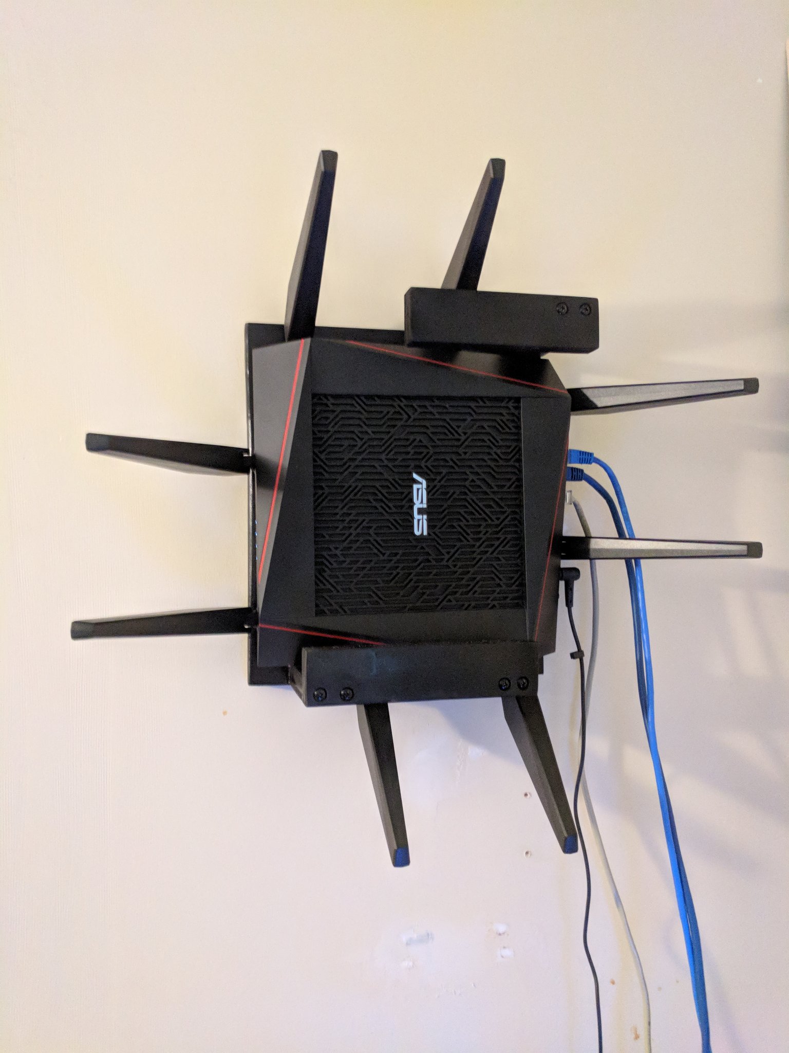 Asus rt ac5300 wall mount. Print now tags standing support router asus rt. May also be compatible with other 8 antenna asus routers router not included obviously. Asus router rt ac5300 rog gt ax11000 wall mount ceiling mount 3dprinted magnetic. 1 mount base 1 mount top 4 4 x 5 8 sheet metal screws 8 20mm by 3mm neodymium magnets super glue or ca glue ebay has all the magnets.