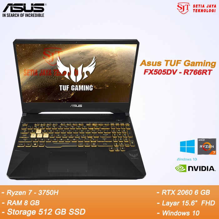 Notebook asus tuf gaming fx505dv r766rt gold steel dengan spesifikasi amd ryzen 7 3750h 2 3ghz 8gb ddr4 2666 mhz dimm pcie nvme 512g m 2 ssd nvidia geforce rtx 2060 6gb gddr6 no odd 15 6 fhd 1920 x 1080 win 10. Asus tuf gaming fx505dv r766rt laptop gaming ryzen dengan geforce rtx 2060 termurah.